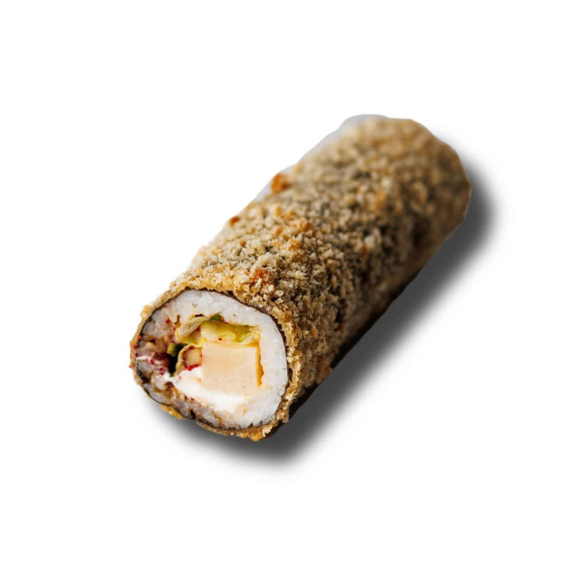 Морський гребінець, соус спайсі, крем-сир, огірок,соус сметанний, сухарі панко, норі, рис,салат айсберг,ікра тобіко чорна.