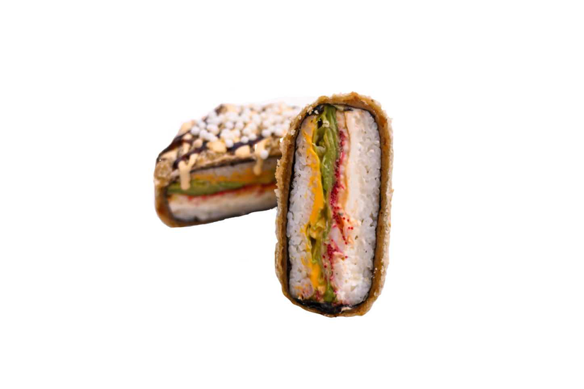 Креветки тигрові, сир чедер, норі, авокадо, крем-сир, салат айсберг, рис, сухарі панко, ікра тобіко,соус спайс,соус сирний, соус унагі.